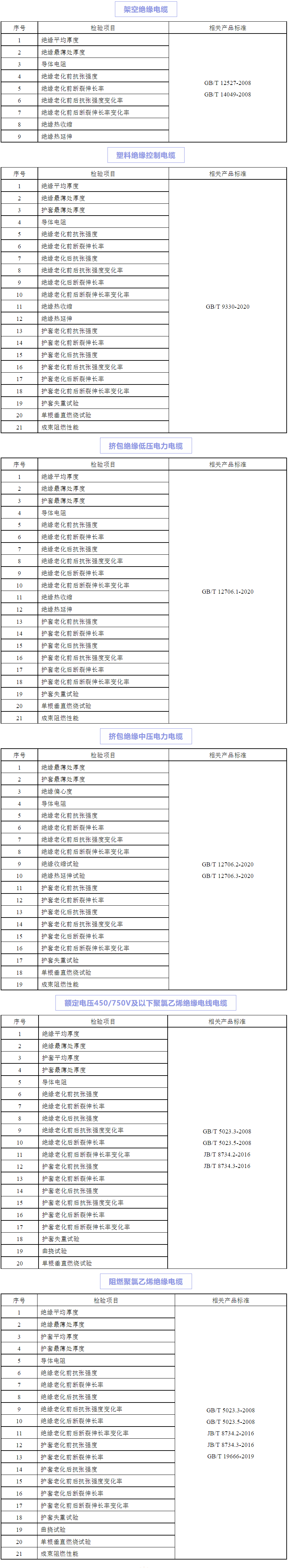 根据2023年3月22日公布的《国家市场监督管理总局2023年度产品质量国家监督抽查抽样检验机构技术服务公开招标项目公开招标公告》中招标文件第87项《2023年电线电缆产品检验项目、依据及方法》,可以判别出本次抽查的产品和2022没有变化、主要有架空绝缘电缆、额定电压450/750V及以下橡皮绝缘电线电缆、塑料绝缘控制电缆、挤包绝缘低压电力电缆、挤包绝缘中压电力电缆、额定电压450/750V及以下聚氯乙烯绝缘电线电缆和阻燃聚氯乙烯绝缘电缆等6大类产品,基本涵盖了许可证和CCC产品中的主流产品,以及目前比较主流的阻燃电线电缆等。