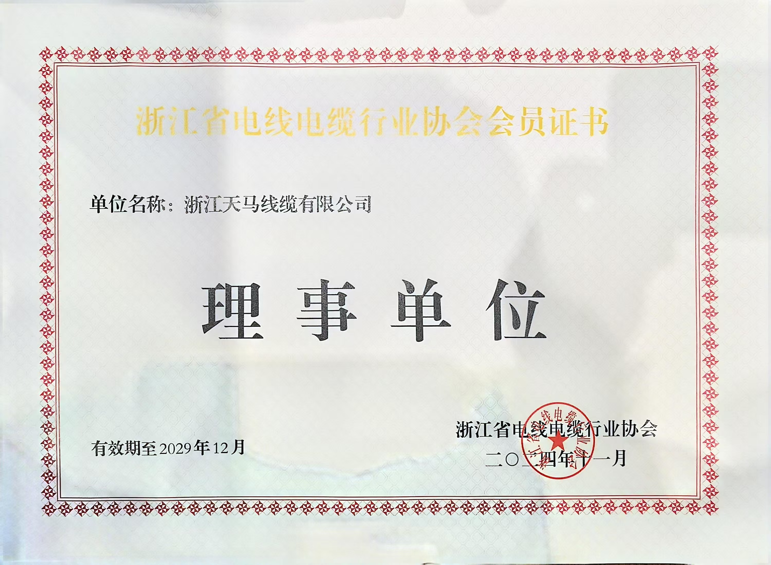 2024年11月15日,浙江省电线电缆行业协会第九次会员大会在雄壮的国歌声中隆重举行。 大会通过无记名投票方式,选举产生了浙江省电线电缆行业协会第九届理事会,悟空体育官网 | WUKONG SPORTS-世界杯官网平台 当选为第九届理事单位。 悟空体育官网 | WUKONG SPORTS-世界杯官网平台 今后将紧密团结在电线电缆协会组织的周围,向优秀的协会企业家同仁们学习,坚持实体经济不放松,始终保持健康、稳健的发展步伐,朝着更快更好的目标,推动企业高质量发展。